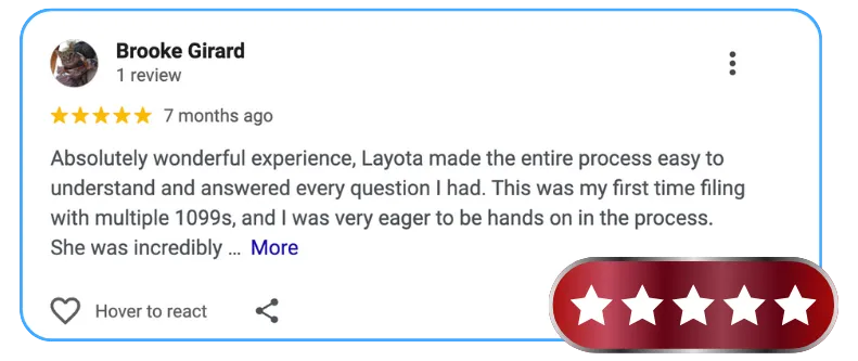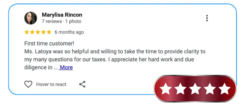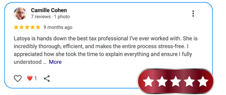 With hands-on experience in federal and state tax preparation, I understand the importance of organization, precision, and client communication. I’m dedicated to making the filing process smooth, efficient, and fully compliant for every person I serve.